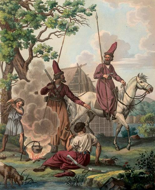 «Пикет Уральских казаков» . Картина Емельяна Корнеева, 1802 год