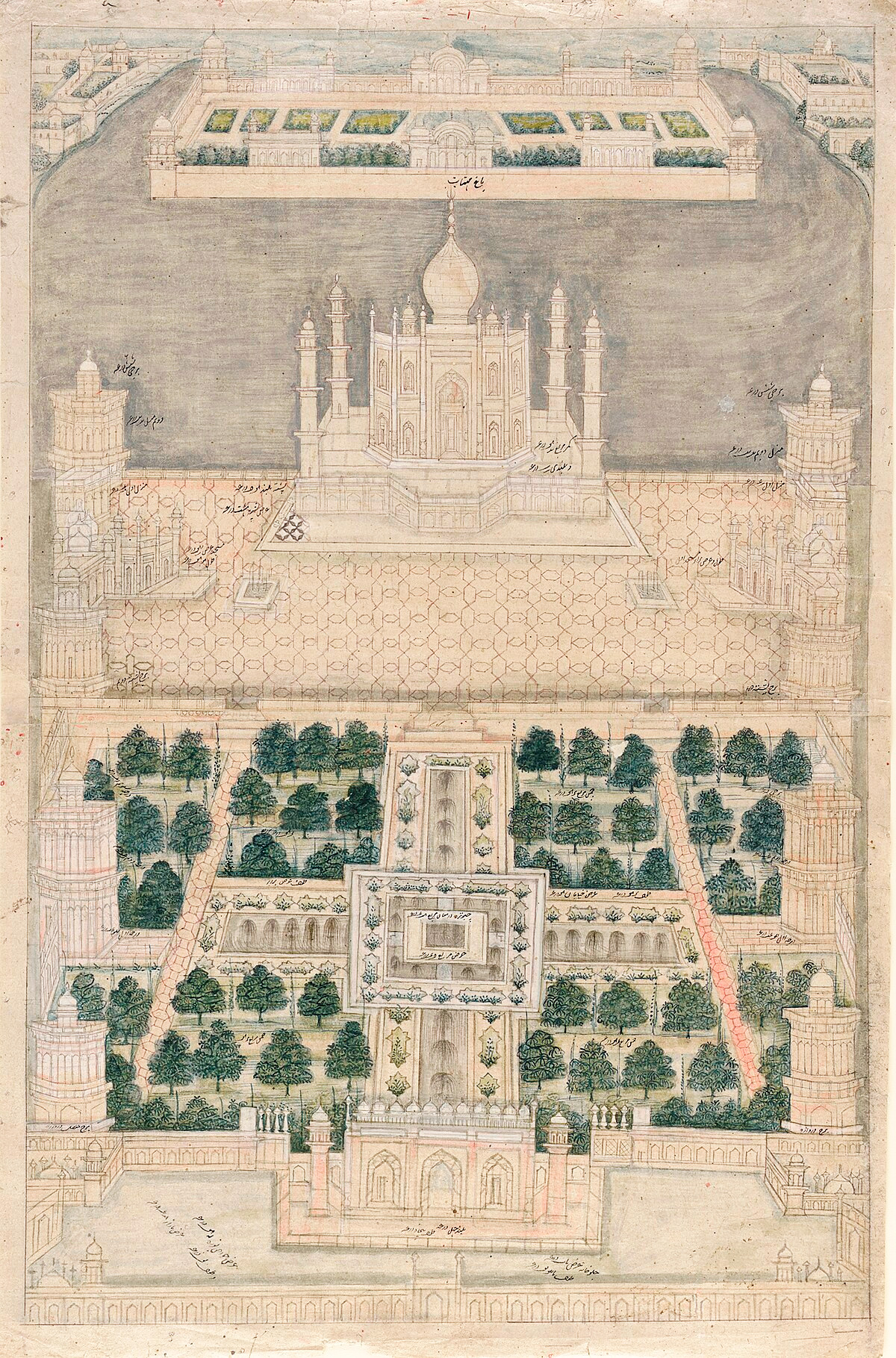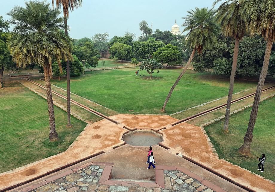Тадж-Махал эти сады повторяет — и превосходит. Он был засажен фруктовыми и декоративными деревьями — цитрусовыми, гранатовыми и хвойными, — и цветами, часть которых была высажена для привлечения певчих птиц, особенно любимых персидской поэзией соловьев.