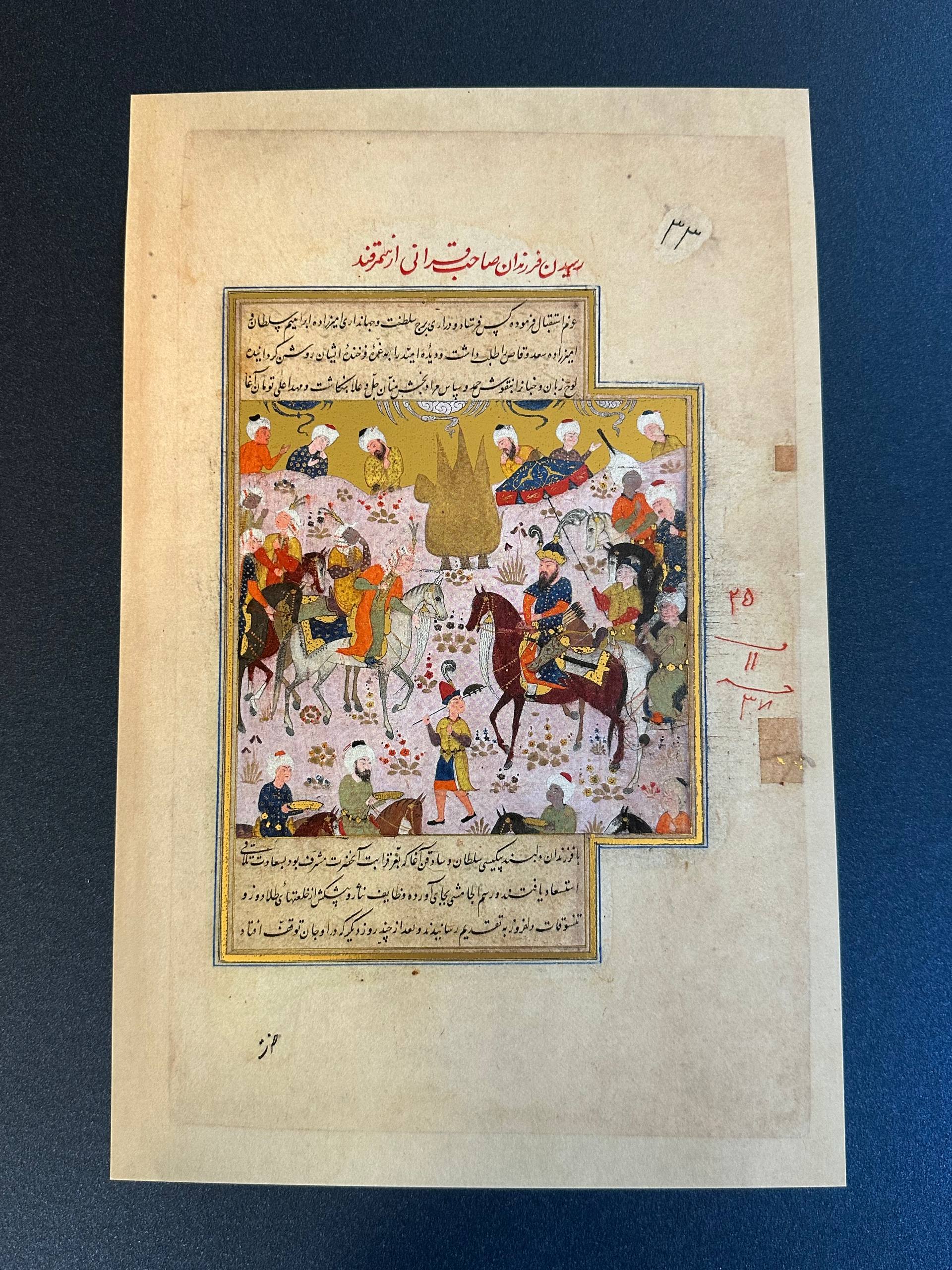 Центральным экспонатом встречи стала демонстрация факсимильного издания «Зафарнаме» — знаменитой хроники тимуридской эпохи из собрания Британского музея. «Зафарнаме» содержит подробное описание походов Тимура, устройства государства и придворной жизни, однако её ценность далеко выходит за рамки исторического текста: миниатюры, каллиграфия, орнаменты и цвет делают эту рукопись подлинным произведением искусства.